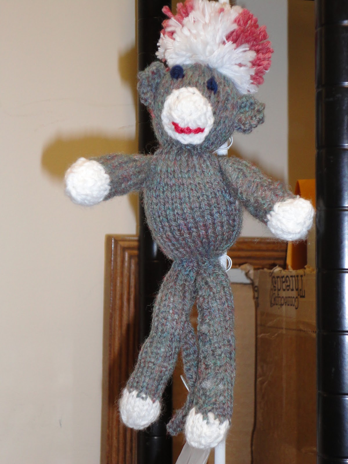 Last week it was the novelty hats - sock monkey ear flaps, top down, bottom up, intarsia, braids, pom poms - the works... now it's the toys.. Thursday July 12th is the start of our two part class on toys. Here's the Rod S of the monkey toy